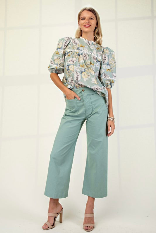 PLUS CHAMBRAY SPLIT NECK SHORT SLEEVE BLOUSE